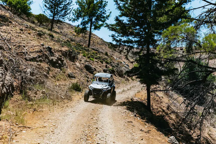 Explore Rhodes on a guided off-road tour on a Polaris RzR Trail S 1000 buggy- Taste some of the island's honey, souma, olive oil, and other local products